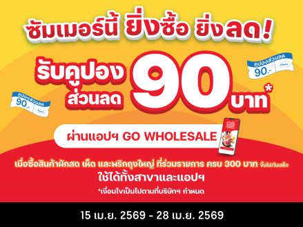 ยิ่งซื้อ ยิ่งลด! ซื้อกลุ่มผักสดใหม่ รับคูปองส่วนลด 90 บาท (โปรโมชั่นวันที่ 15 เม.ย. 2569 – 28 เม.ย. 2569)