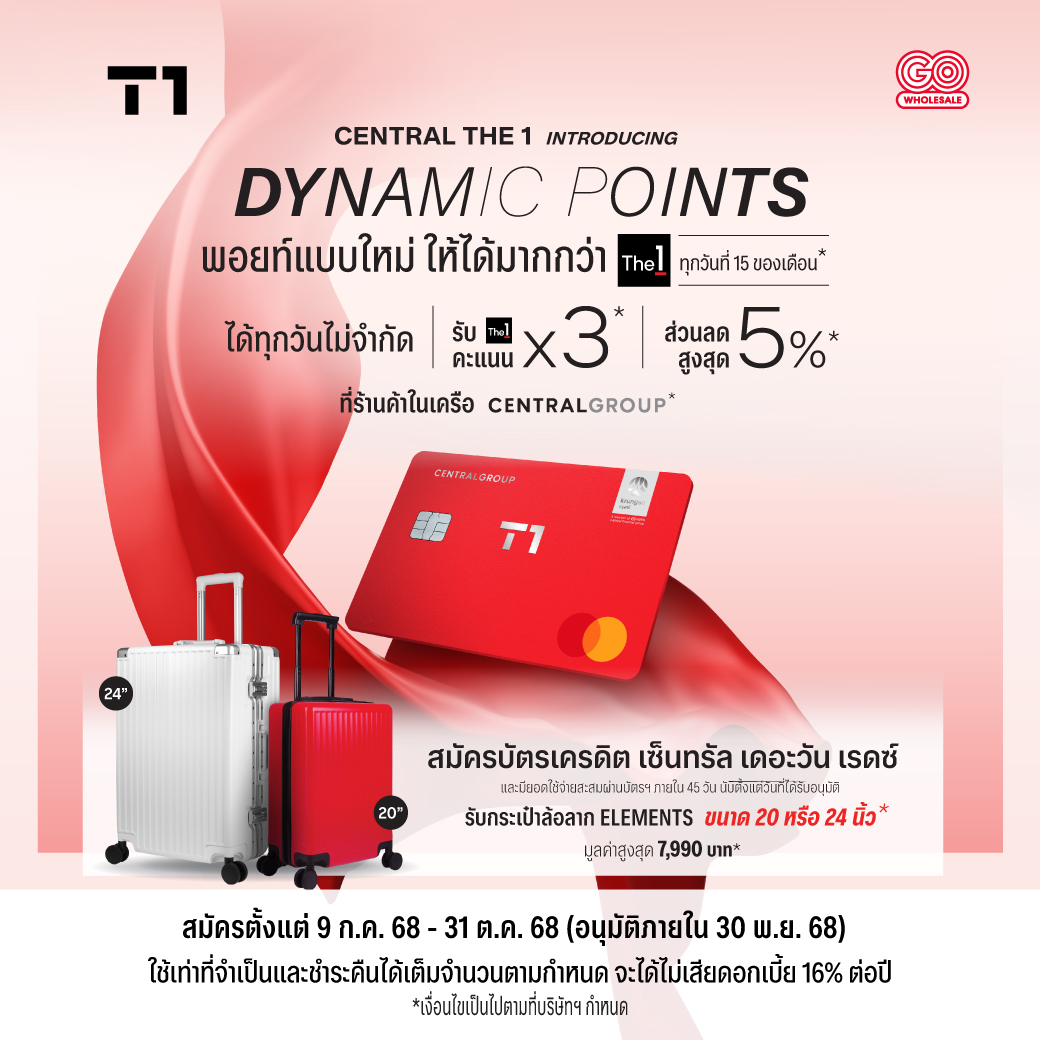 • เฉพาะผู้สมัครบัตรหลักรายใหม่ของบัตรเครดิต เซ็นทรัล เดอะวัน ซึ่งสมัครบัตรฯ หรือได้แจ้งชื่อและข้อมูลการติดต่อแก่บริษัทฯ ผ่านทางเว็บไซต์ www.centralthe1card.com เพื่อให้บริษัทฯ ติดต่อกลับและทำการสมัครบัตรฯ ระหว่างวันที่ 9 กรกฎาคม 2568 – 31 ตุลาคม 2568 โดยจะต้องยื่นเอกสารการสมัครภายในวันที่ 31 ตุลาคม 2568 และต้องได้รับการอนุมัติภายในวันที่ 31 พฤศจิกายน 2568 เท่านั้น