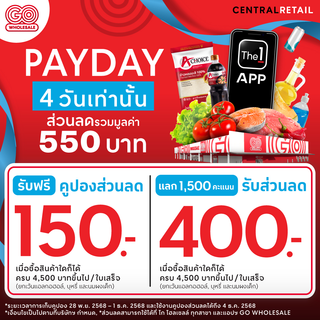 • สามารถใช้คูปองได้ที่ โก โฮลเซลล์ ทุกสาขา และ GO APP
