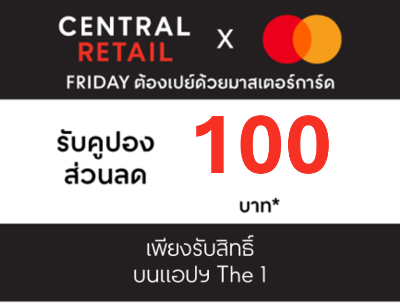 FRIDAY ต้องเปย์ด้วย Mastercard รับคูปองส่วนลด 100 บาท บนแอป The 1 (2 ม.ค. 2569 – 25 ธ.ค. 2568)