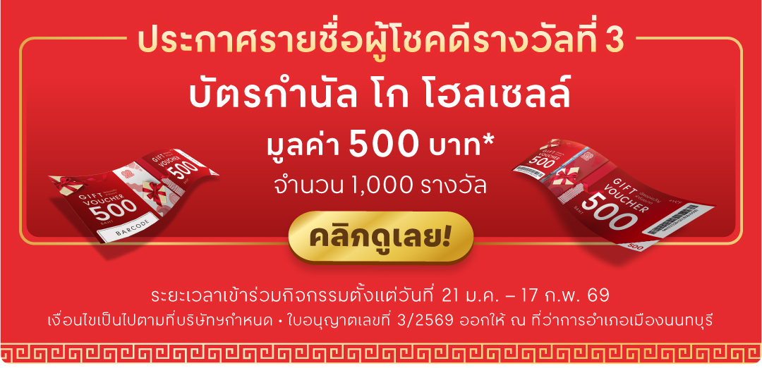 3 บัตรกำนัลโก โฮลเซลล์ 500 บาท 1,000 รางวัล 500,000 บาท