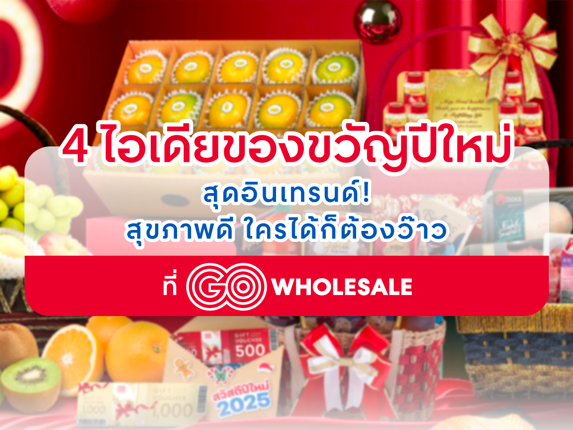 ของขวัญปีนี้ไม่ใช่แค่ให้ แต่คือการมอบพลังบวกให้กัน เริ่มต้นปีด้วยของขวัญที่ใส่ใจ เติมเต็มสุขภาพกายใจและมอบความสุขในทุกมิติ เรียกได้ว่านี่แหละ ของขวัญปีใหม่ที่ดีที่สุด! ไม่ว่าของขวัญแบบไหน คุณสามารถมาเลือกซื้อความปรารถนาดี เพื่อส่งต่อให้คนที่คุณรักได้ที่ GO WHOLESALE ทุกสาขา