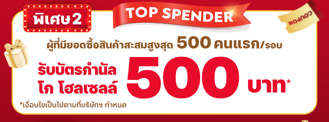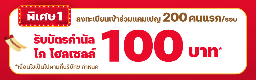 - แคมเปญนี้สงวนสิทธิ์เฉพาะลูกค้าสมาชิกโก โฮลเซลล์เท่านั้น สงวนสิทธิ์ในการสะสมยอดซื้อสินค้า โดยลูกค้า 1 ท่าน ต่อ 1 บัญชีสมาชิกเท่านั้น ไม่สามารถรับและใช้สิทธิ์แทนกันได้