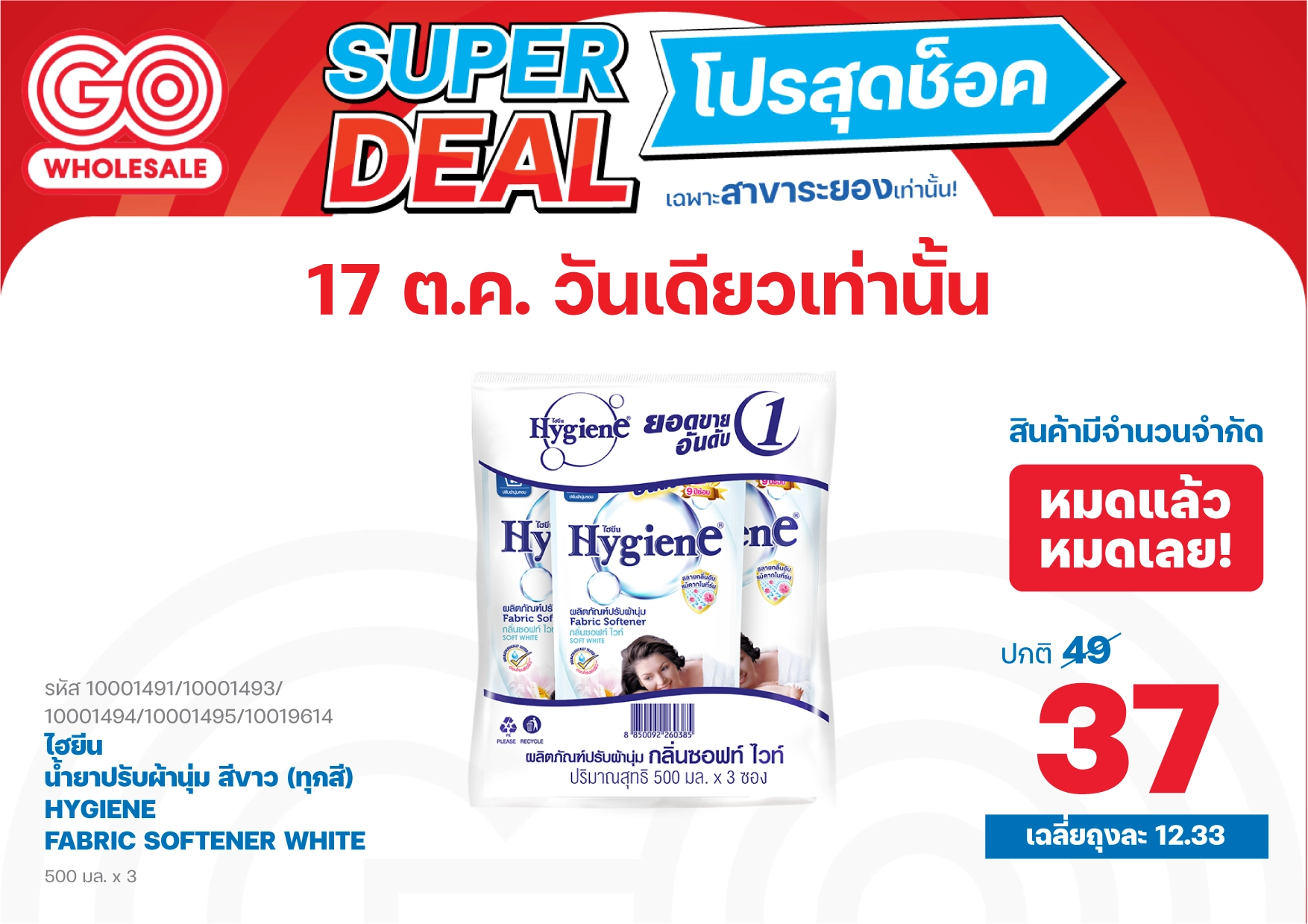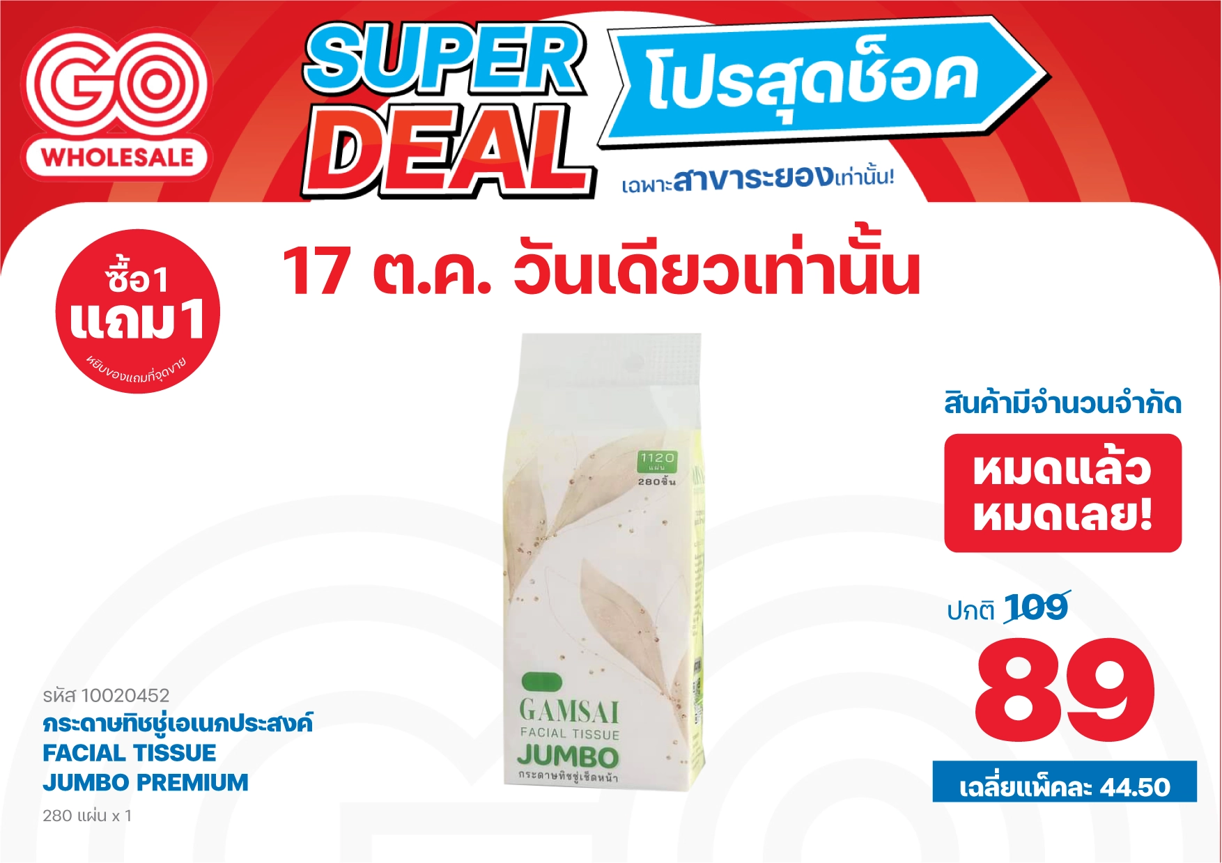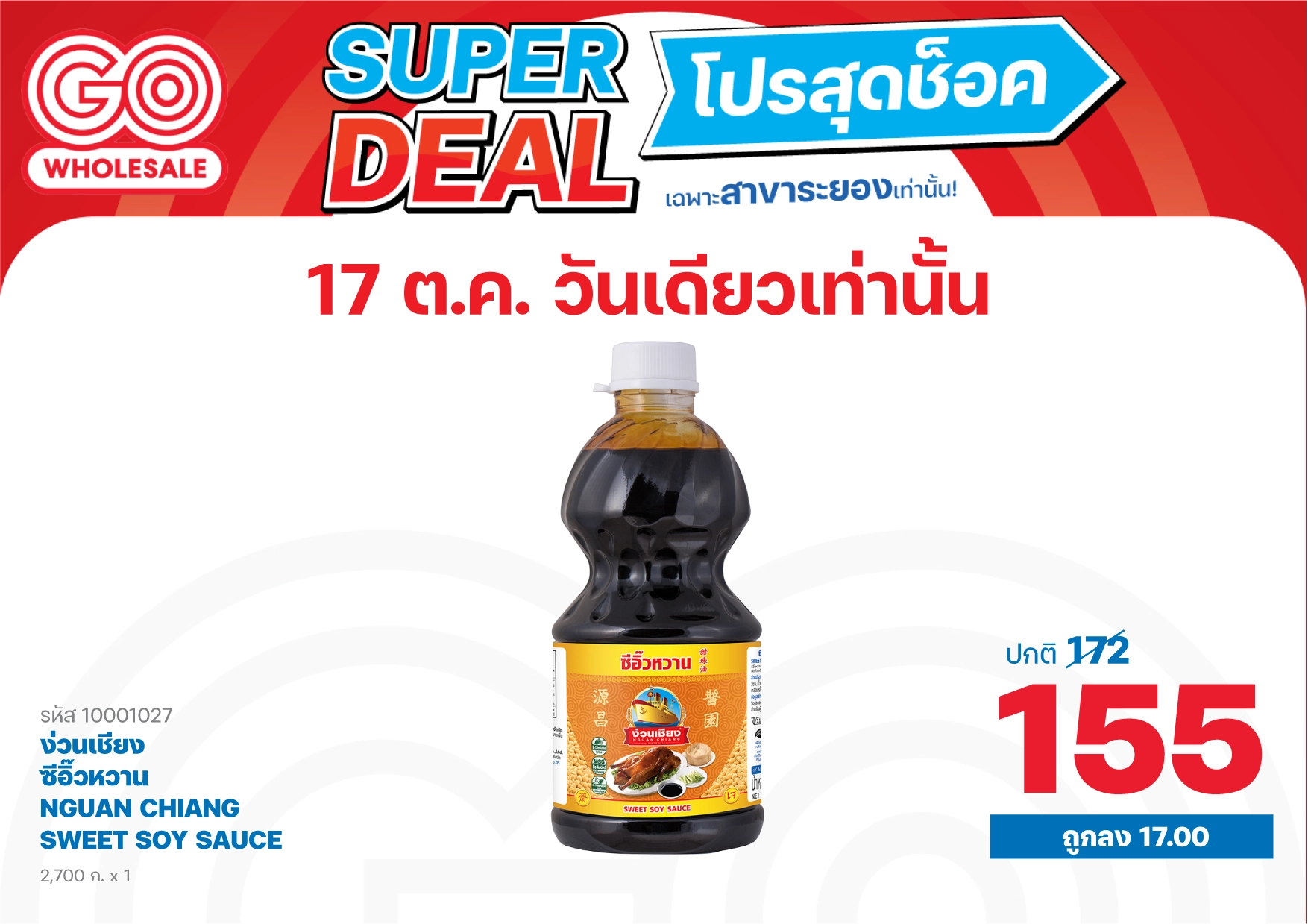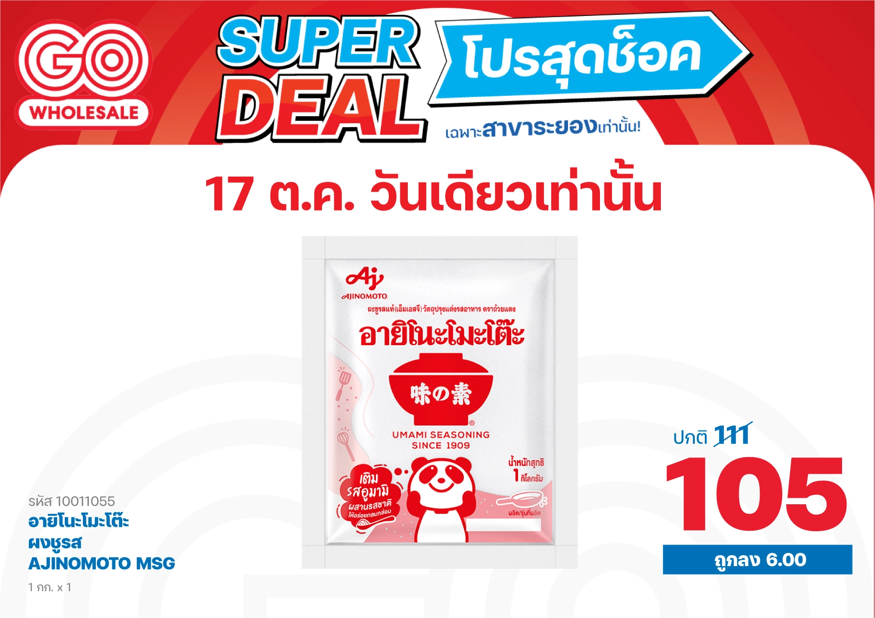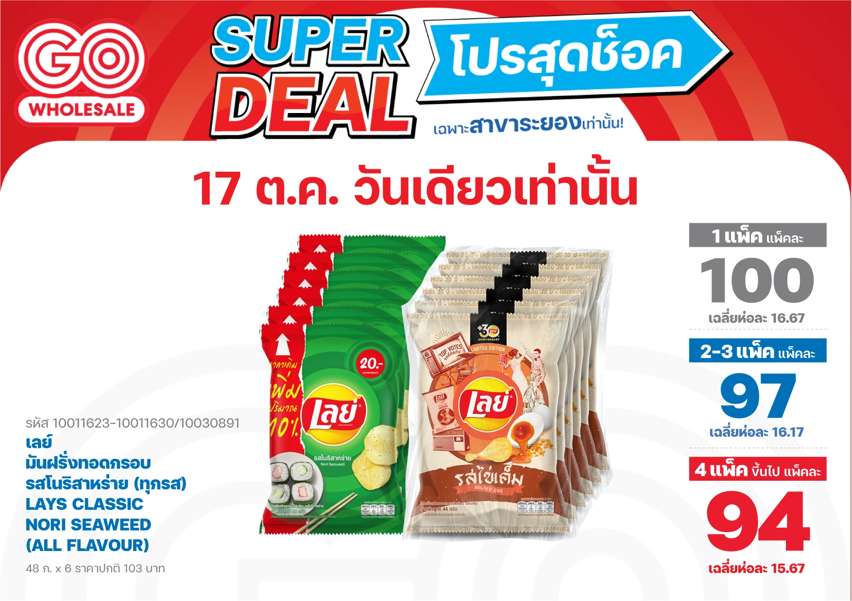 17 ต.ค. 2568 ลดวันเดียวเท่านั้น! โปรสุดช็อค เฉพาะสาขาระยอง