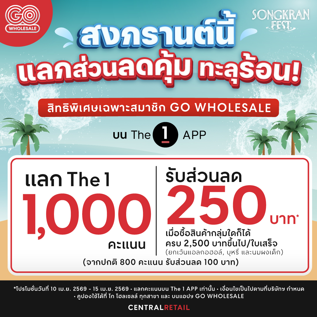 สามารถใช้คูปองได้ที่ โก โฮลเซลล์ ทุกสาขา และ GO App